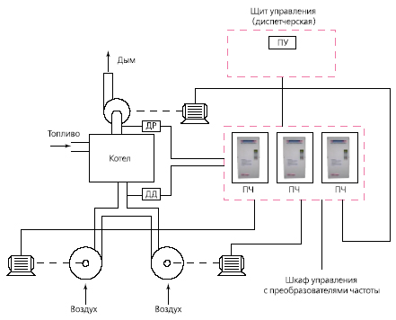 Важно отметить, что включение преобразователей в схему управления тягодутьевым механизмом было выполнено с минимальными затратами и без каких-либо изменений существующей системы автоматики.